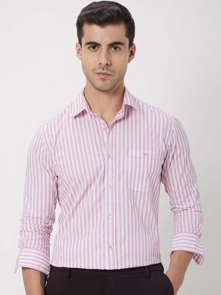 Mufti Slim Fit Striped Pure Cotton Casual Shirt
