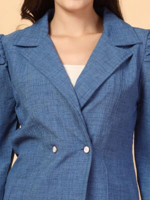Blue Lapel Collar Long Sleeves Pure Cotton Blazer With Trouser