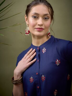 Blue Embroidered Shirt With Palazzos Co-Ords