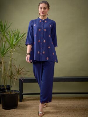 Embroidered Shirt Collar Neck Shirt With Trousers Co-Ords