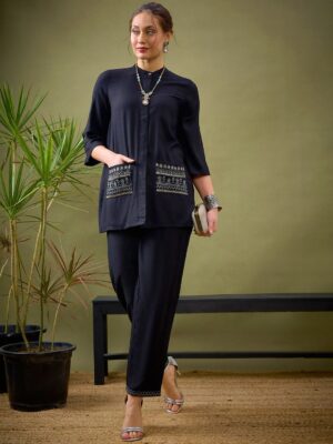 Black Embroidered Shirt With Palazzos Co-Ords