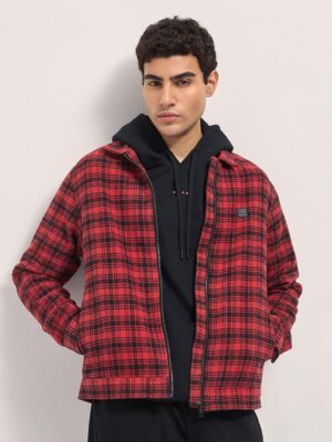 Men Checked Lightweight Outdoor Pure Cotton Bomber Jacket