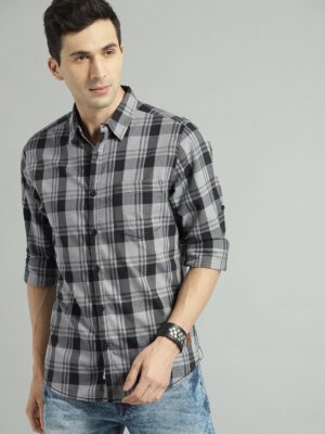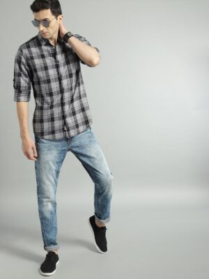 Roadster The Lifestyle Co Men Black & Grey Regular Fit Checked Casual Shirt