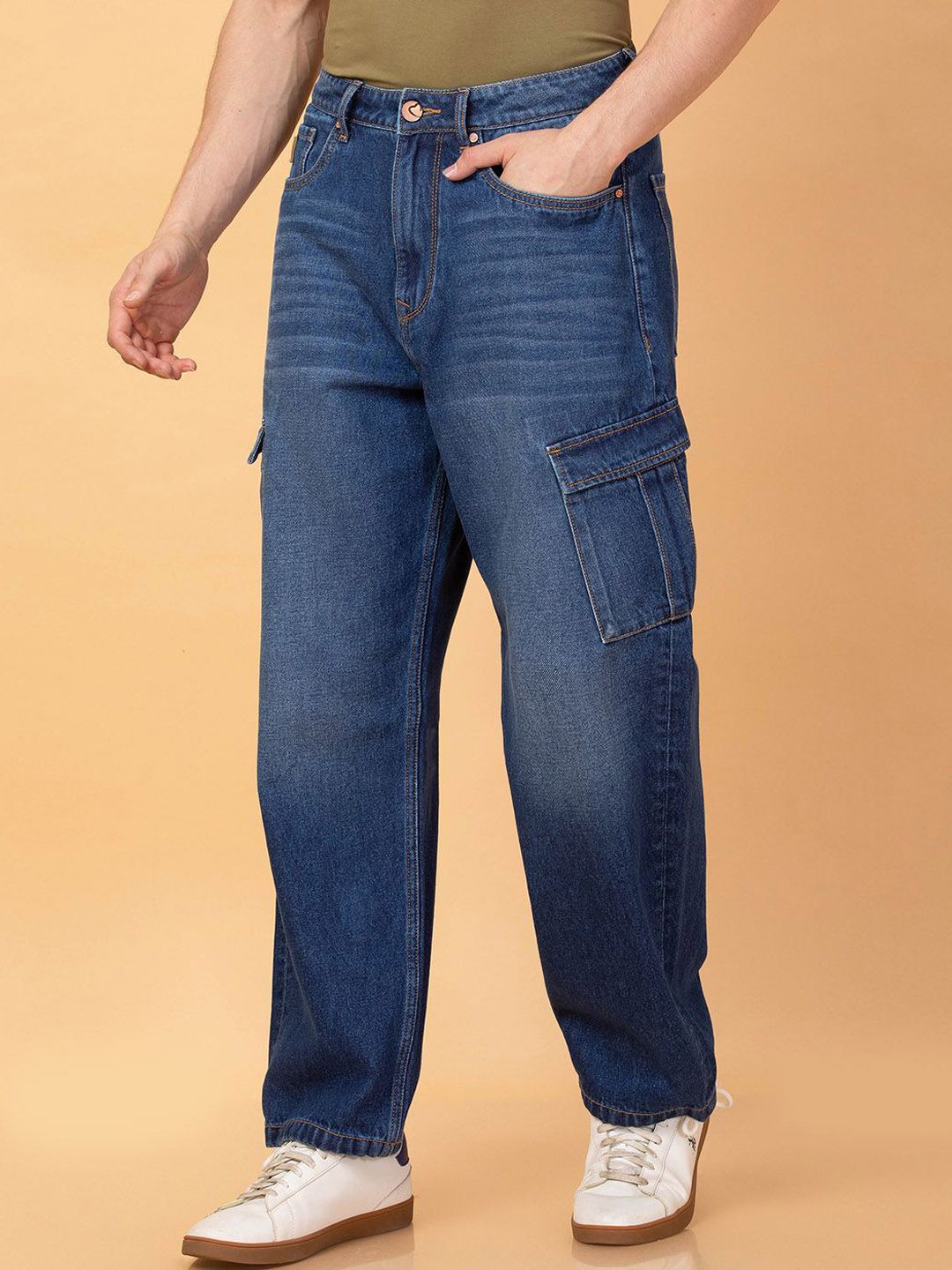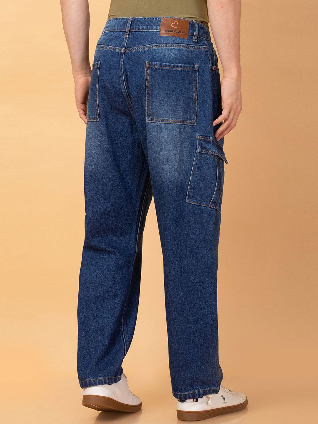 - Medium shade, light fade blue jeans