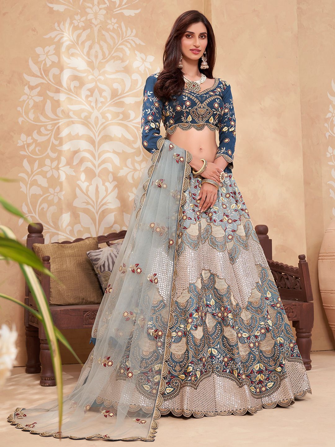Blue lehenga choli with dupatta,