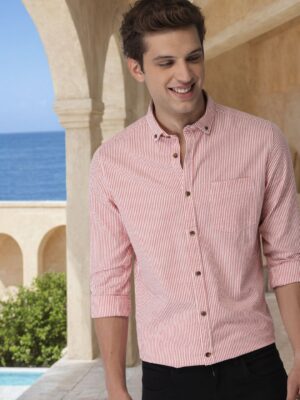 Men Pink & White Slim Fit Striped Casual ShirtMen Pink & White Slim Fit Striped Casual Shirt
